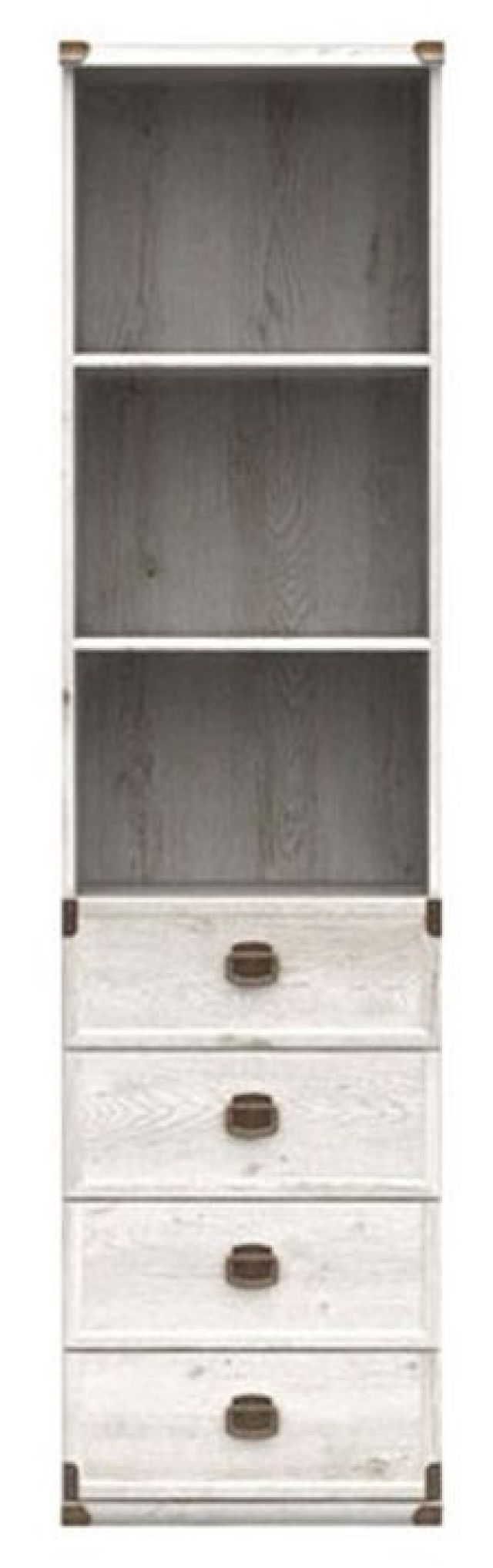 Модульная система «Индиана» выполнена из высококачественных, экологически чистых и безопасных материалов – ЛДСП, МДФ. Металлическая фурнитура произведена в Германии фирмой Hettich. Ручки и оковки по углам изделий имеют оригинальную форму и придают мебели антикварный вид. Яркое впечатление производят варианты цветового решения коллекции: темный «дуб саттер» и светлый нежный оттенок «сосна каньон».