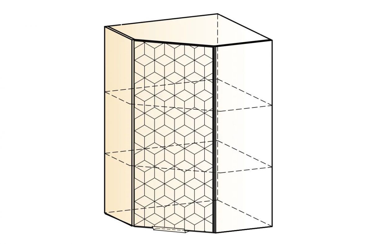 СТОУН Шкаф навесной угл. L600х600 Н900 (1 дв. гл.) с фрезеровкой, 23.79.02
