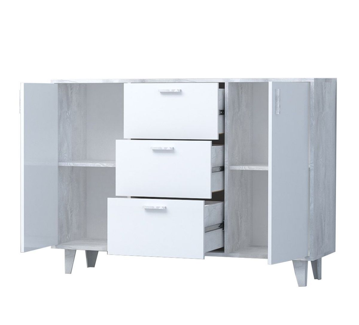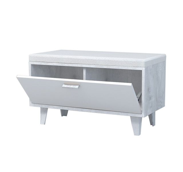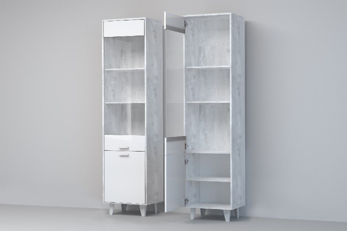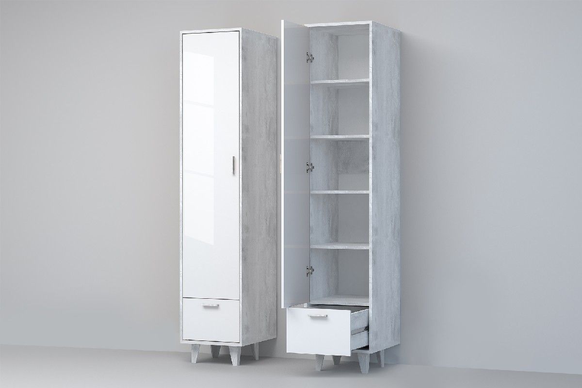 Прихожая Эго, модульная (на ножках) Бетон светлый/Белый глянец