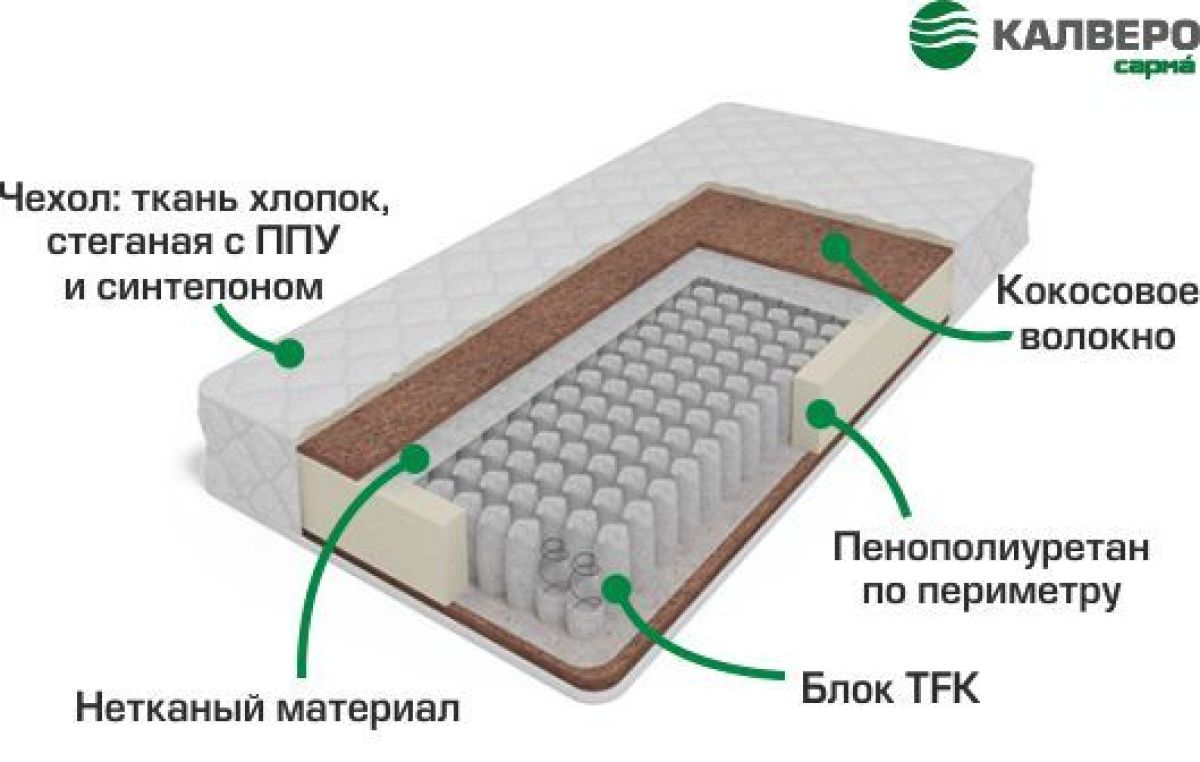 Кокосовое волокно используется в матрасе для придания жесткости спальному месту. Экологически чистый природный материал, получаемый из обдира ореха кокосовой пальмы. В наших матрасах используется только латексированное кокосовое волокно, что повышает его износостойкость и безопасность.